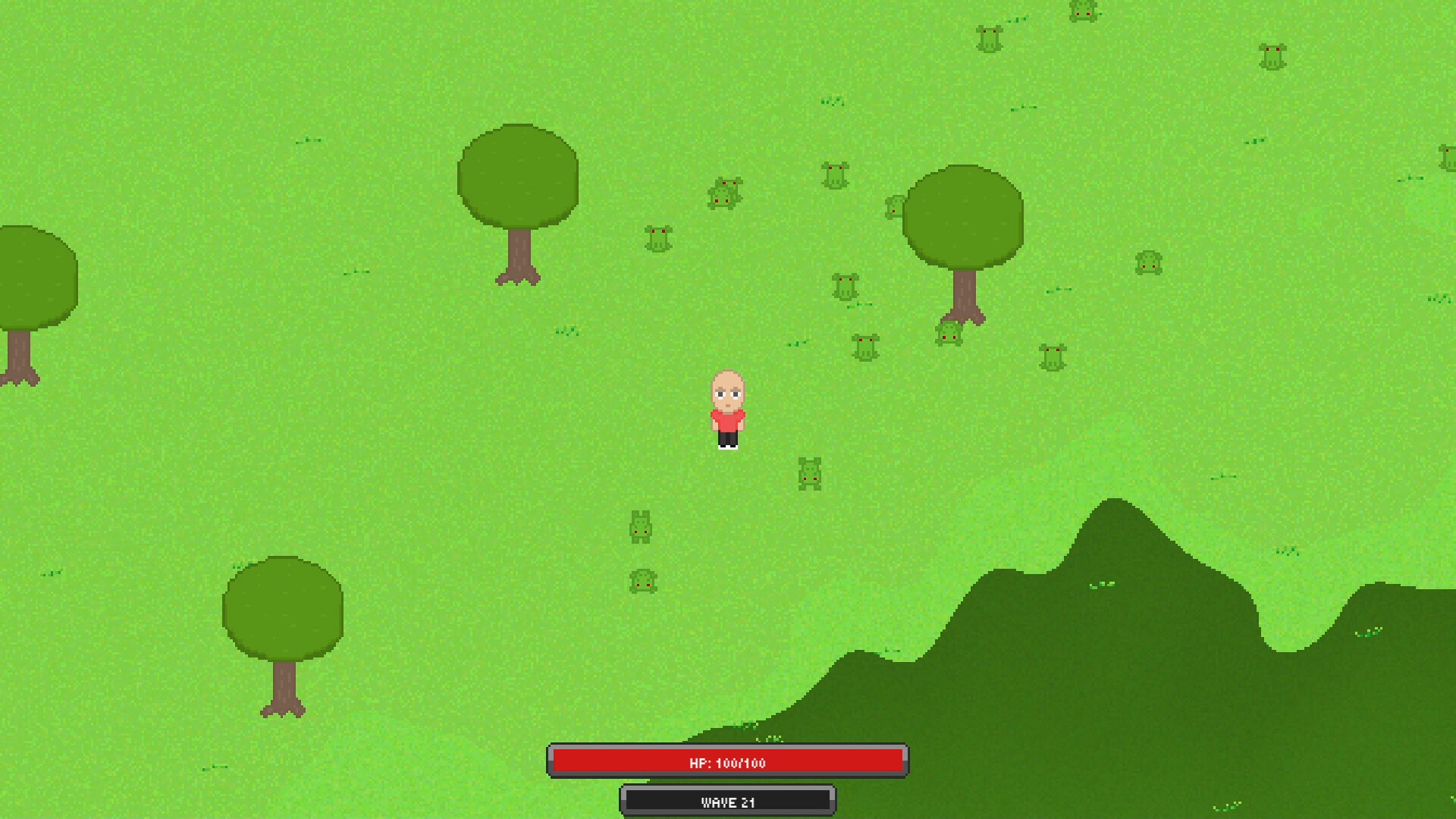 Meander your way around a never-ending world, defeating successive waves of enemies and stealing their pennies so that you can buy items that'll help you defeat even more enemies. There's also boss fights. And frogs.