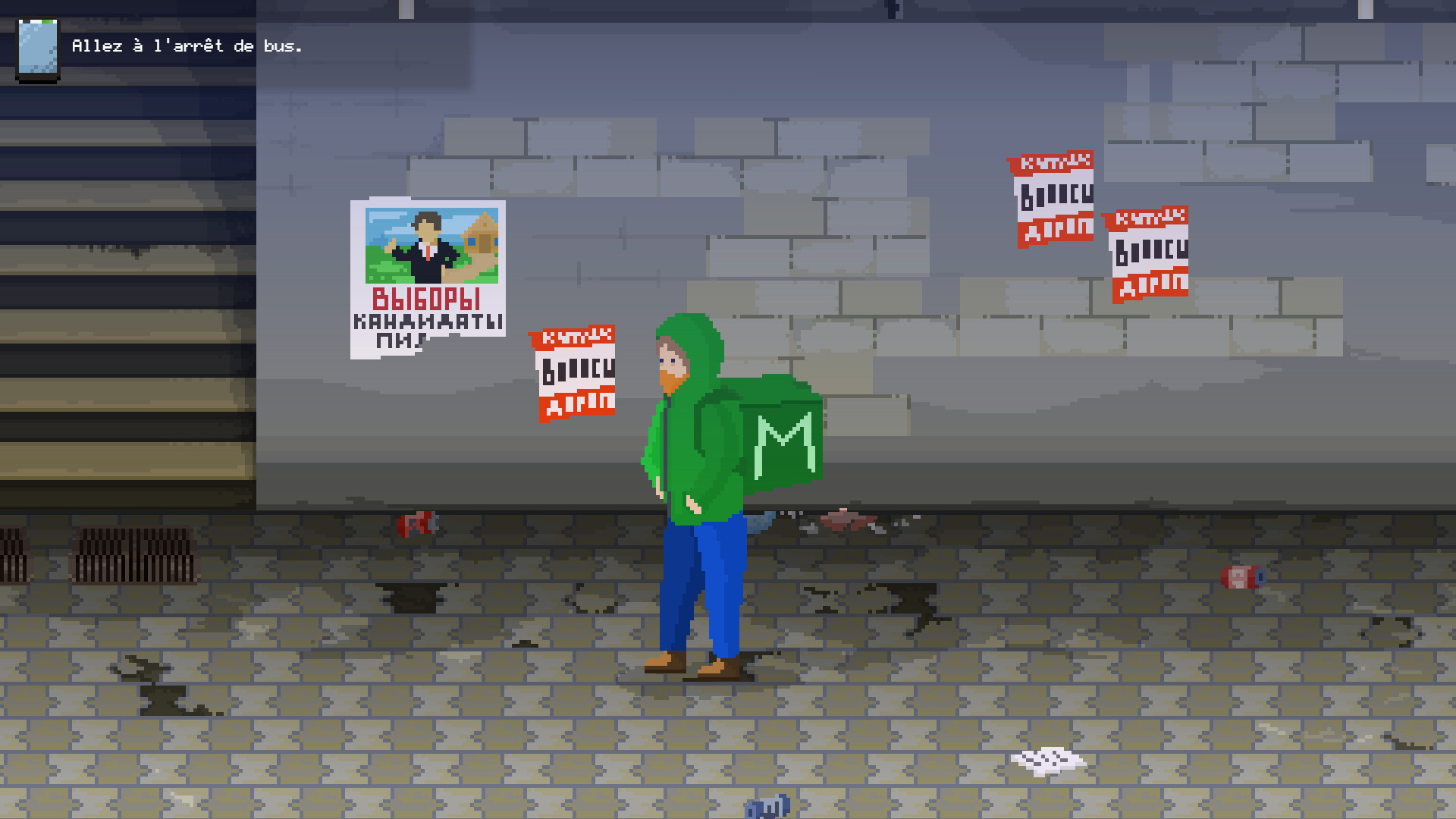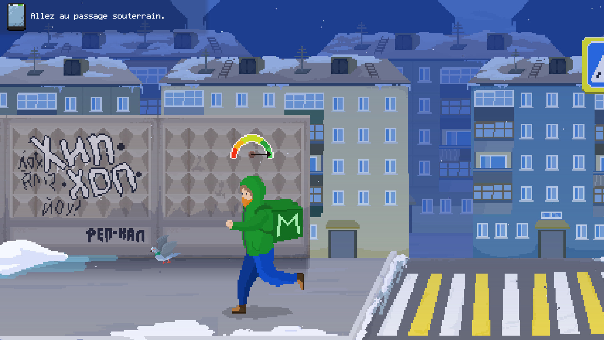 Jouez le rôle d'un livreur de nourriture de la petite ville de N. Cette version de démonstration vous permettra de vous familiariser avec le début du jeu et ses mécanismes de base :