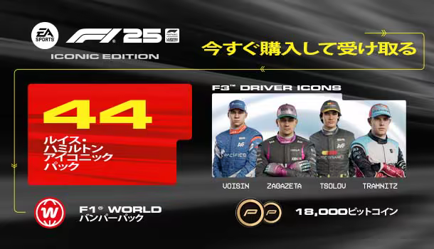 F1® 25 アイコニックエディションを購入すると、以下のものが入手できます: