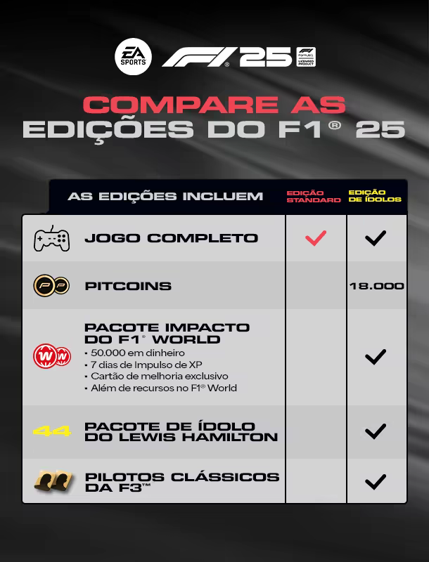 • E mais: novas cinemáticas, cenas de pódio atualizadas e pistas invertidas em circuitos selecionados.
