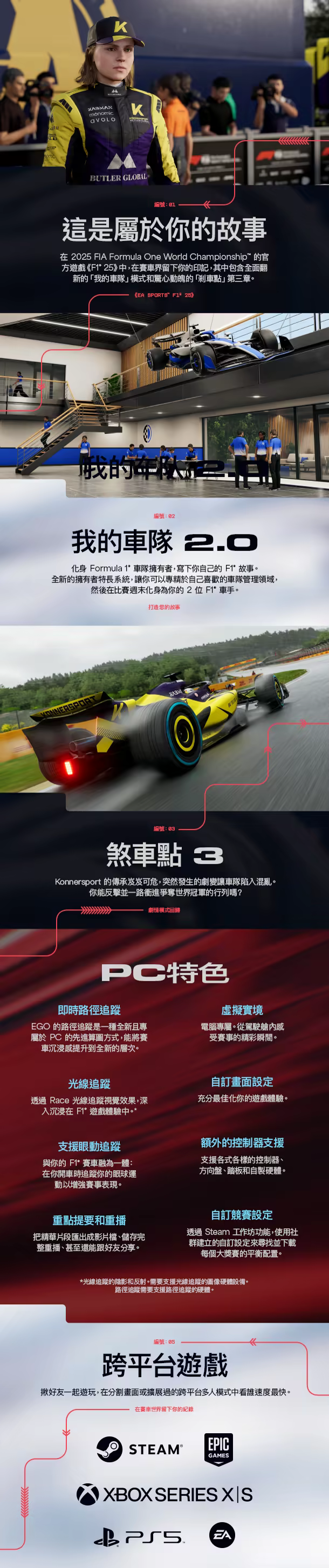 透過 2025 FIA Formula One World Championship™ 的官方遊戲《F1® 25》,在賽車界留下你的印記,其中包含全面翻新的「我的車隊」模式、驚心動魄的「剎車點」第三章等豐富內容!