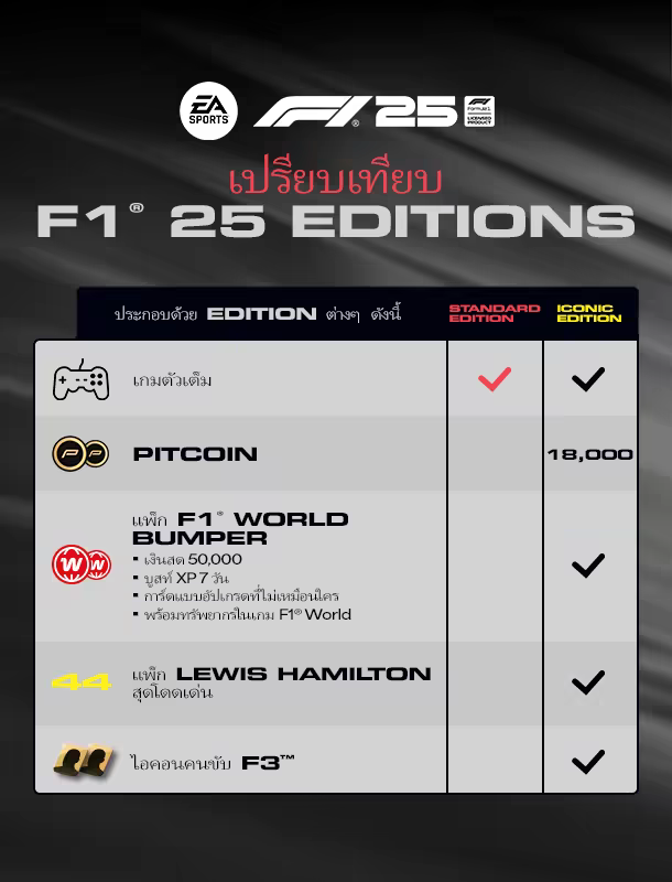 ซื้อ F1® 25 Iconic Edition เพื่อรับรายการต่อไปนี้