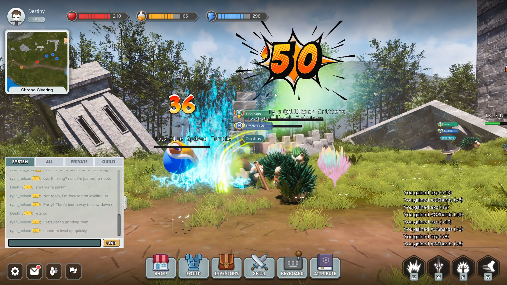 Grind your way through the monster galore: Mechnical monkeys, blue kittens or pink sponges, level up and discover the many monsters that call Aetherian Haven home!