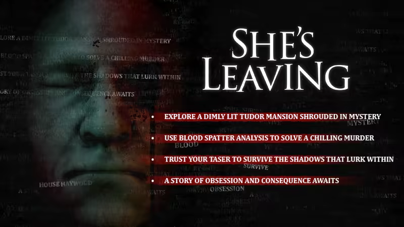 Put your forensic skills to work in She's Leaving, a terrifying first-person survival horror thriller where the line between hunter and hunted is razor thin. Investigate, survive, and escape before the darkness consumes you.