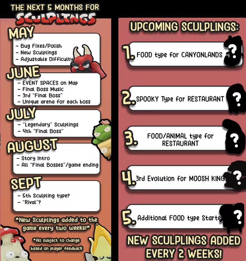 Sculplings is a mashup of roguelikes with traditional monster fighter games! Each run has players collecting and battling a random assortment of hand-sculpted monsters in the hopes of reaching the Sculpling Champions!