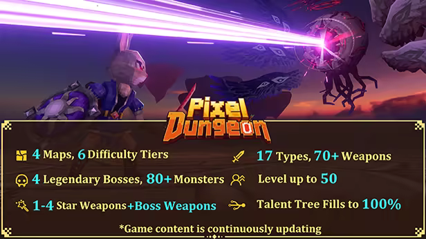 던전 오브 에터니티와 고대 던전**의 핵심 게임플레이를 결합하고, 전투 재능을 업그레이드한 멀티플레이어 온라인 협력 던전 게임 픽셀 던전은 여러분을 마인크래프트의 VR 서클로 데려가 미지의 세계를 탐험하게 합니다!