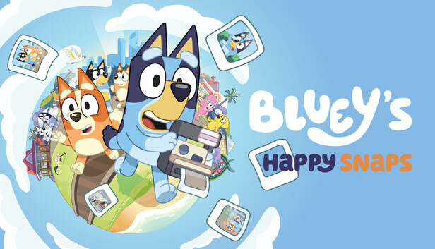 Join everyone's favorite Blue Heeler in Bluey's Happy Snaps, a playful interactive adventure inspired by the hit TV series. Explore familiar locations, play with loads of toys, or chase cheeky bin chickens, and enjoy fun activities with Bluey, Bingo, and friends.