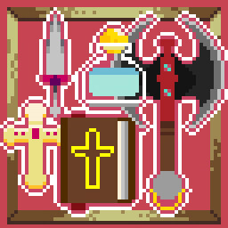 • Throwing axe, dagger, cross, holy water and orgy bible