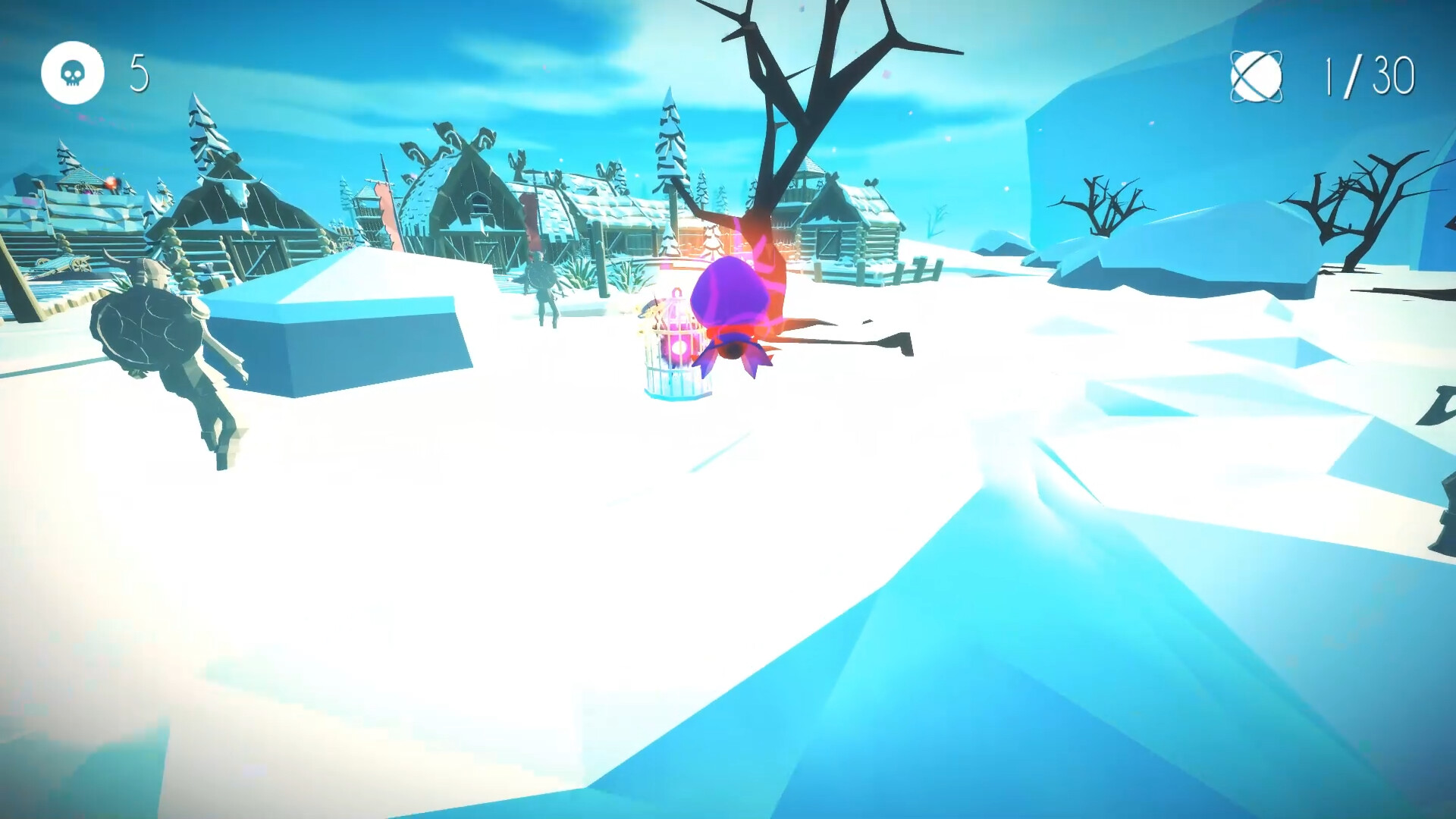At first, you’re unable to open these cages, but your exploration soon leads you to discover soul energy, shimmering like magical essence scattered throughout the environment. This energy is vital, empowering you to shoot and break open the cages. With this newfound energy, you take aim and shoot the cages, watching as they burst open and release the trapped souls.