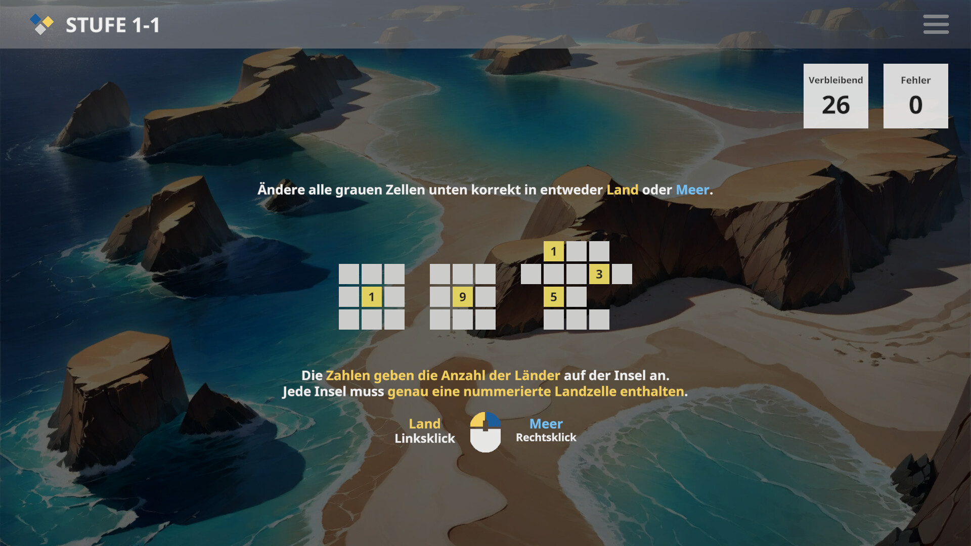 「Archipel Logik Infinite」ist ein herausforderndes Puzzle-Spiel, inspiriert vom beliebten Nurikabe. Erkunde legendäre Archipele, indem du Zellen als Land oder Meer markierst, und erlebe anspruchsvolle Rätsel sowie endlos generierte Inhalte für grenzenlose Entdeckungen.