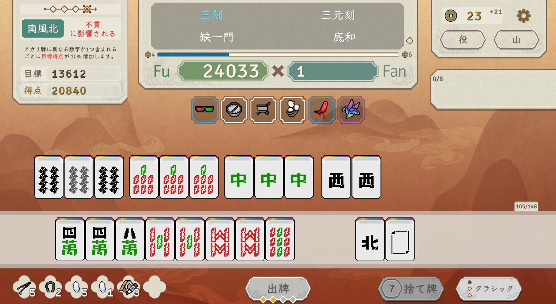 100種類以上の役と144種類のユニークな遺物を活用することで、どんな牌でも驚くべき連携を生み出せます。適切なタイミングでアイテムを使用し、牌を操作してピンチを乗り越えましょう!