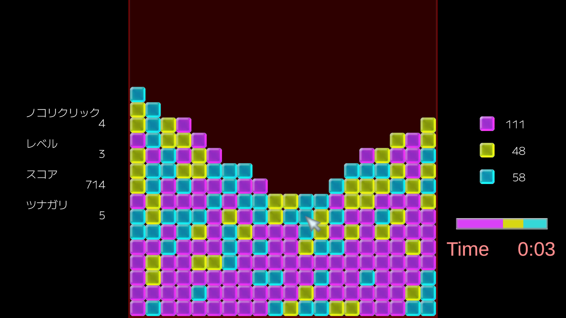 同じ色の粒をつなげて一気に消す爽快感たっぷりのパズルゲームです。