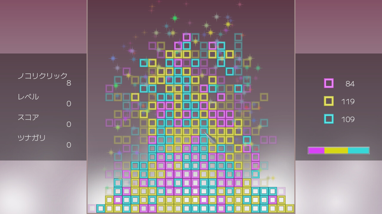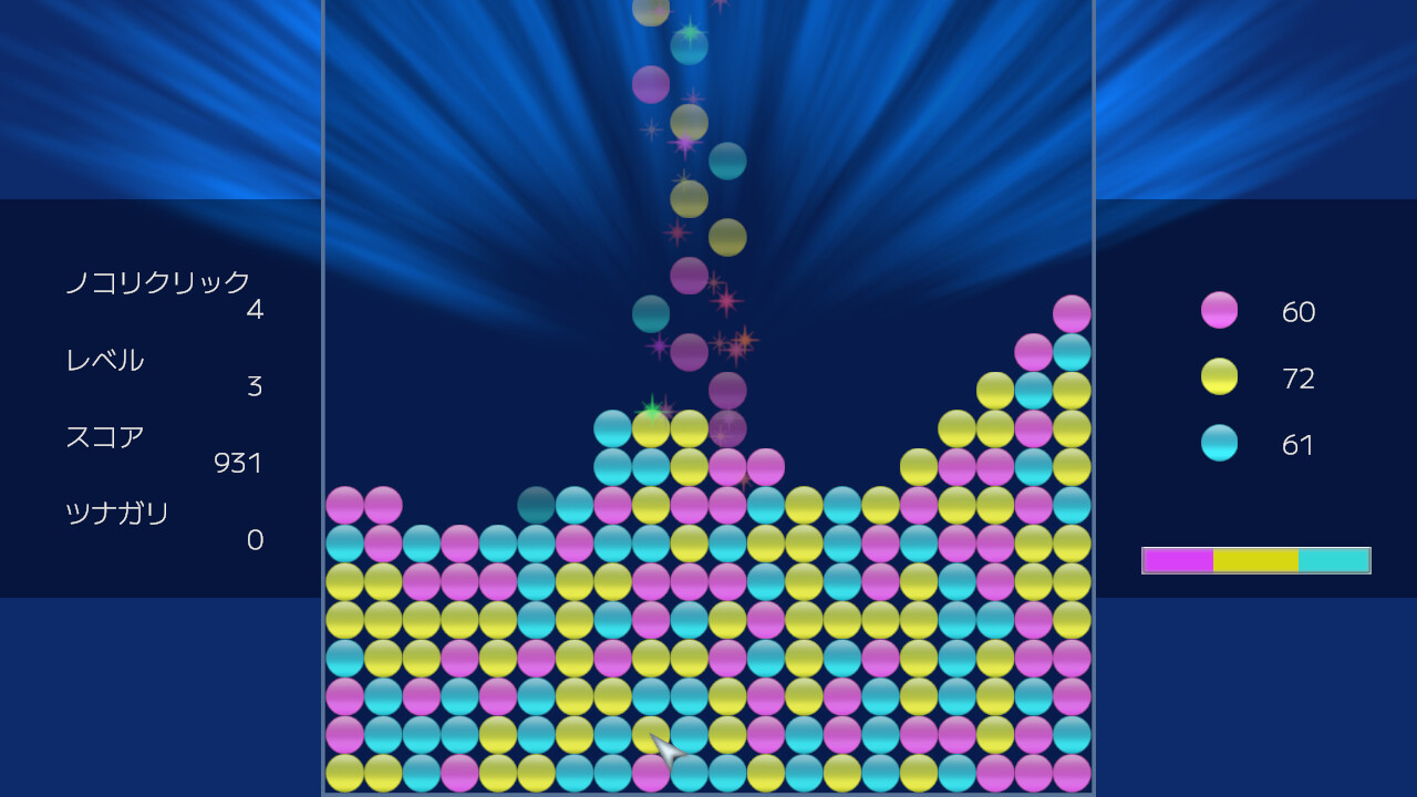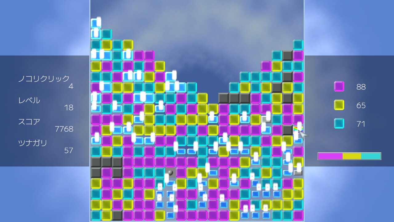 同じ色の粒をつなげて一気に消す爽快感たっぷりのパズルゲームです。