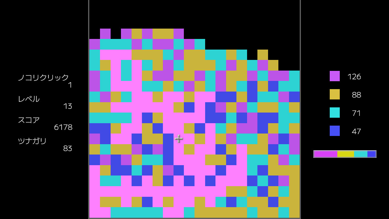 粒はつなげればつなげるほど、消したときに、より高得点を獲得できます。
