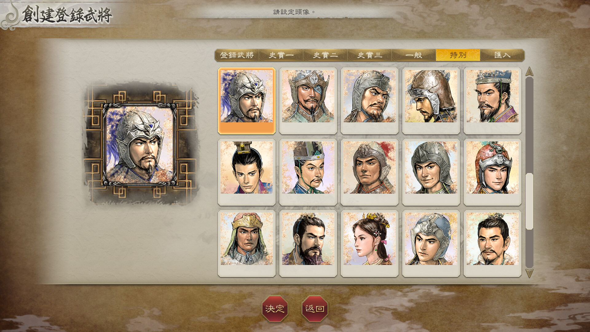 「編輯」>「編輯史實武將」>「編輯史實武將」>「變更臉孔」的「特別」標籤中。
