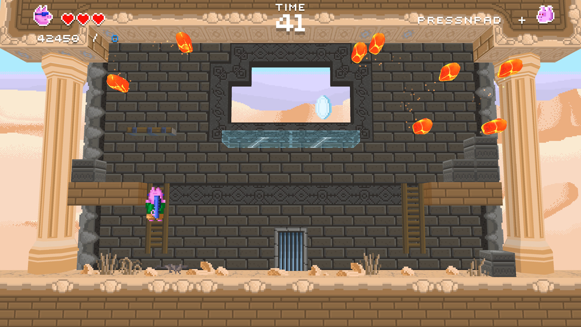 Wild fireballs have gone haywire, and you must shoot them down using your special hookshot. Shoot the hookshot straight upwards to attach it to the ceiling, where it will stay briefly, destroying any fireballs that touch the hanging rope. Gain access to various powerups, such as freezing movement, replenishing countdown time, faster shots, upgraded defenses, and more.