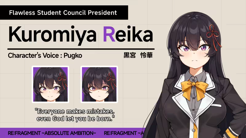 From the creators of The Picture of Café au lait, AstralSeal presents their third original visual novel – Re:Fragment ~Absolute Ambition~. In this game, there is a unique school where everyone can vote on proposals, and the ideas that receive the majority of votes become new rules.