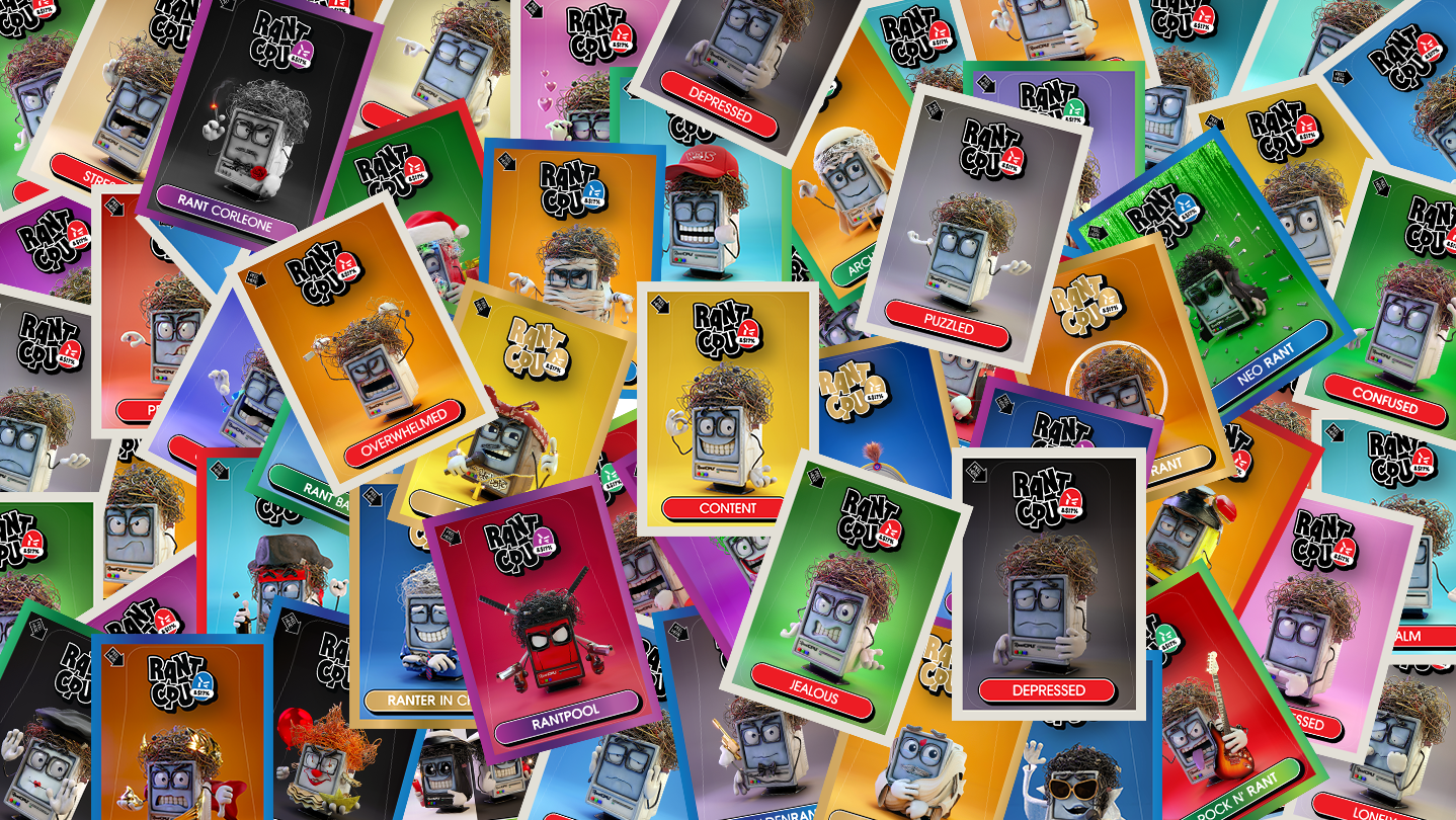 Dive into RantCPU's zany realm! Every click uncovers a new collectible card featuring RantCPU in one of his many moods, donning hilarious human cosplays, or parodying famous people and pop-culture icons. Who knows what the top of his Google search list will inspire today?