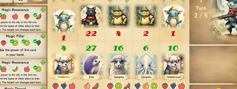 Each animal card comes with fruits, and you can stack them if their fruits match.