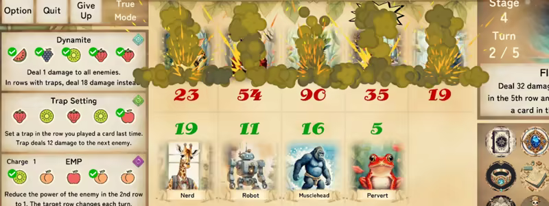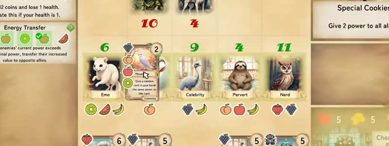 When animal cards are played and fruits match, skills are activated.