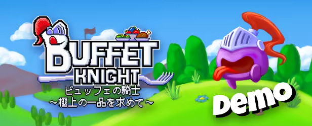 最初のダンジョンの終わりまで体験できるデモ版の前菜で、ビュッフェの騎士の冒険を味見しよう。セーブファイルは本編に引き継げる!