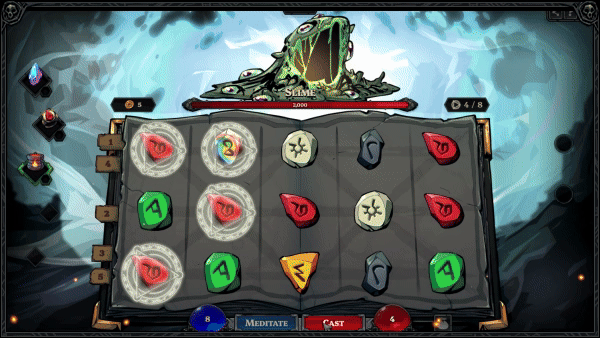 Runeborn is a dark fantasy roguelike that merges deckbuilding with a slot-machine-like mechanic.