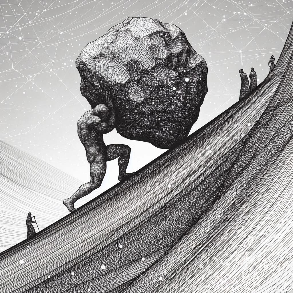 Todo lo que hay es una mano, una piedra y la pendiente de una montaña. Con práctica, subirás la piedra hasta la cima.