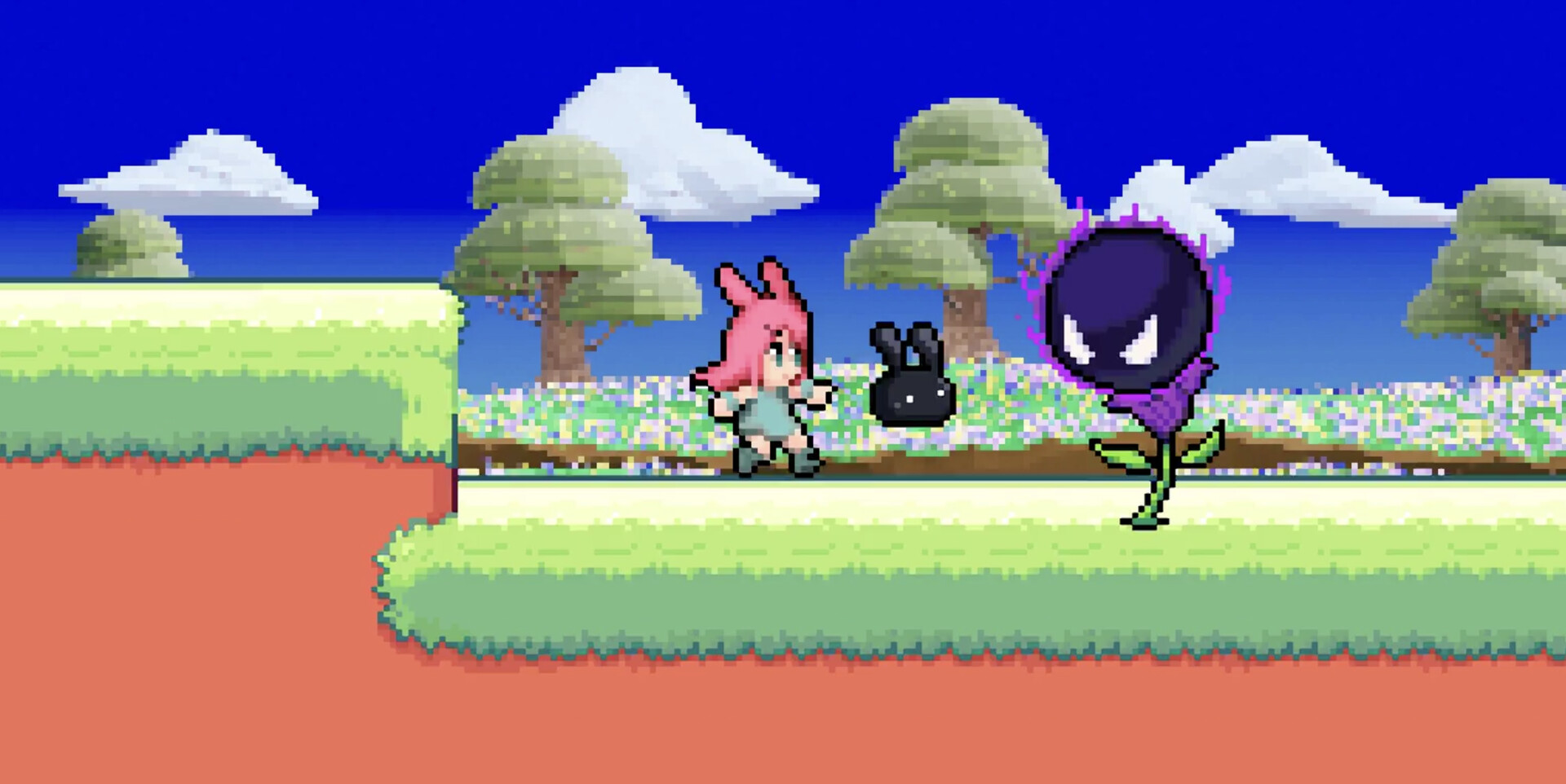 A 2-D action adventure platformer where you can absorb and manipulate things with your friend Moku. You can use different abilities to explore and interact with the world.