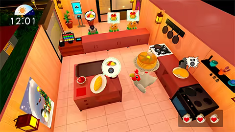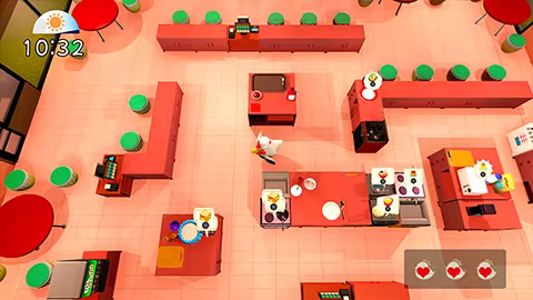 Control adorable animals and start running a bustling café! As you manage the ever-increasing number of customers, your café will expand and new menus will keep appearing! Get ready to enjoy a new kind of 3D action game featuring cooking mini-games and serving challenges!