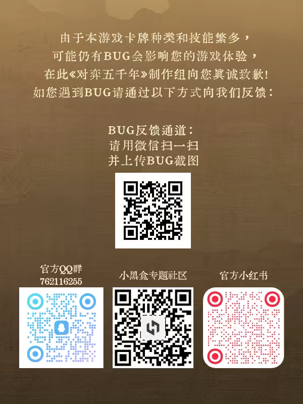 2、开发的时间和精力有限,肉鸽卡牌游戏的排列组合实在太多,难免会有bug,我们向被影响游戏体验的朋友真诚致歉,请通过各种渠道向我们反馈,我们会不断进行修正与体验优化!