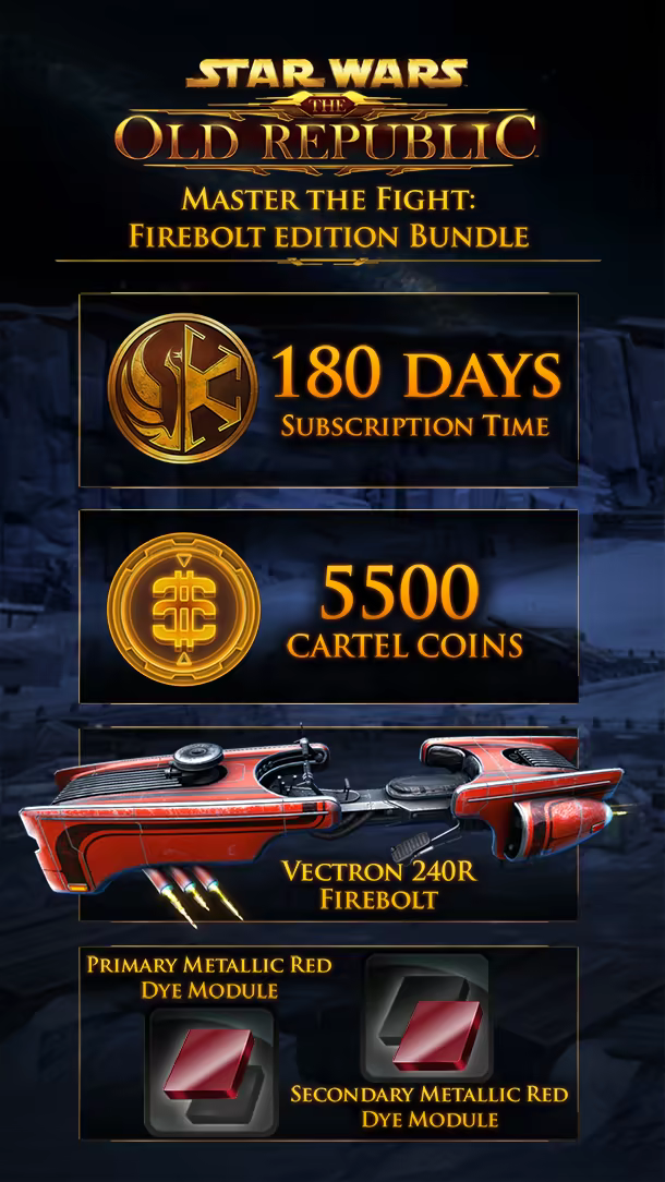 Notice: STAR WARS™: The Old Republic™ - Master the Fight - Firebolt Edition is no longer available on the Steam store.