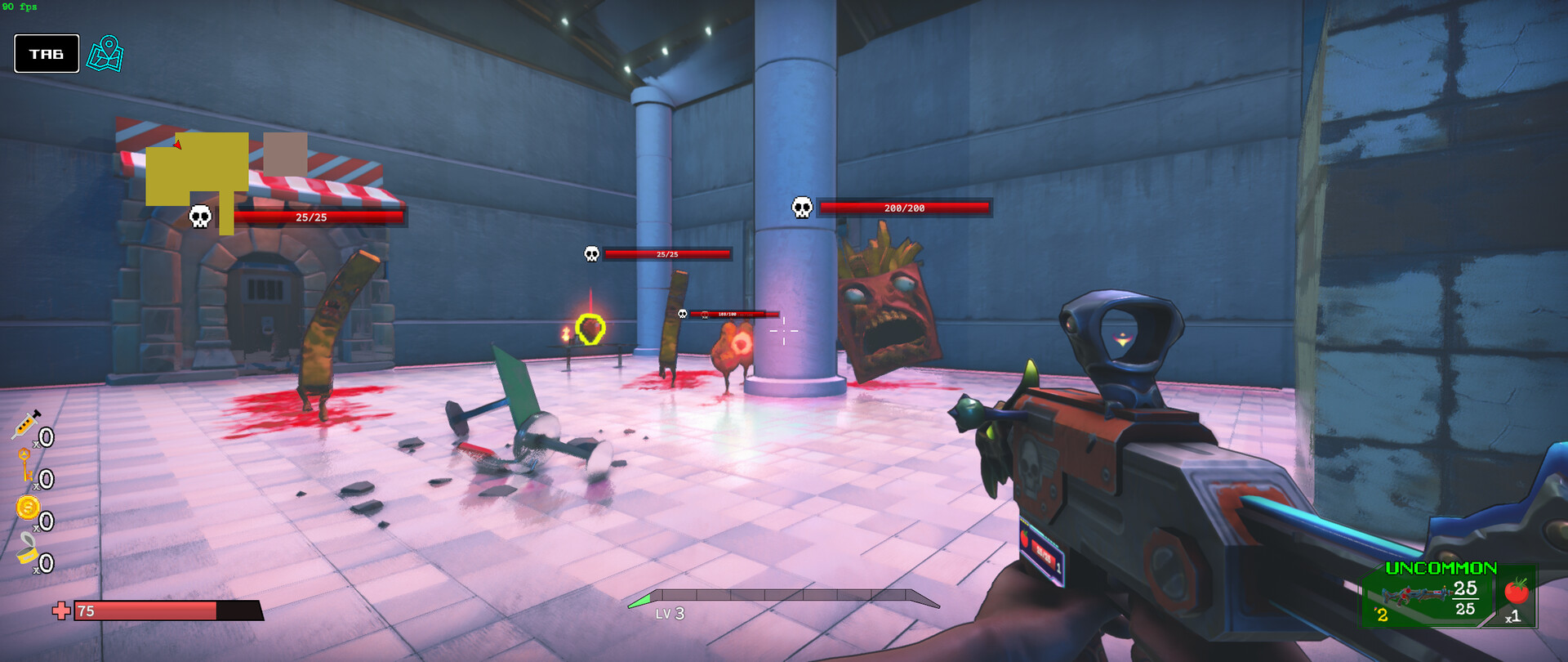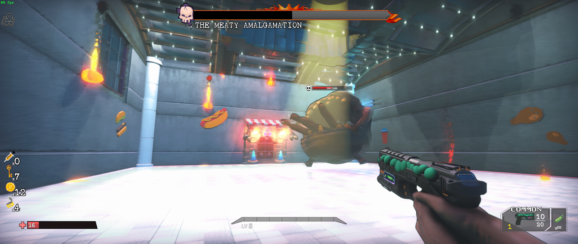Craft and wield bizarre weapon combinations. Load your guns with distinct food-based ammo types, each creating wild combat and environmental effects.