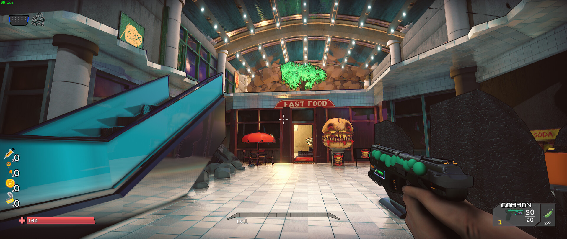 Welcome to Tater Hills Mall, the proud home of Spudnik Biosystems, creators of the nutritional wonder-ingredient "Cholesterite." Once hailed as a miracle, Cholesterite's side effects are now clear: an insatiable, demented army of mutant food bent on devouring humanity. Unfortunately, you're on today's menu.