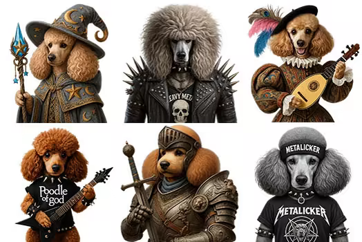 Discover poodles of all colors and personalities. From the warrior and wizard poodles to heavy metal poodles, goth poodles to the punk poodles, each one has a distinct look and attitude, making every click a joyful experience.