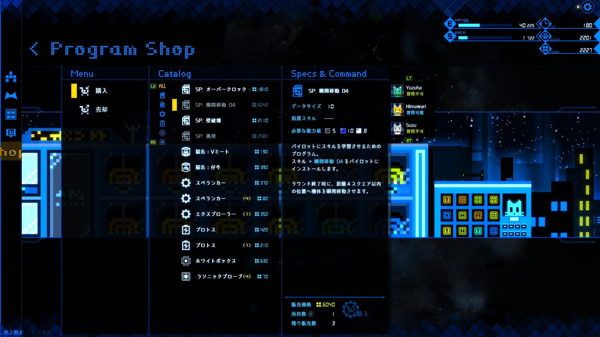 “正式リリースでの目標はさらに深い階層と真のエンディングの実装です。また、全体的なコンテンツ(戦闘マップのバリエーション、スキル、モジュール、アイテム、登場人物、小さなミッションなど)の増強を予定しています。ゲームバランスの調整が成功するかどうか次第ですが、よりローグライク感のあるゲームモードの追加も検討しています。”