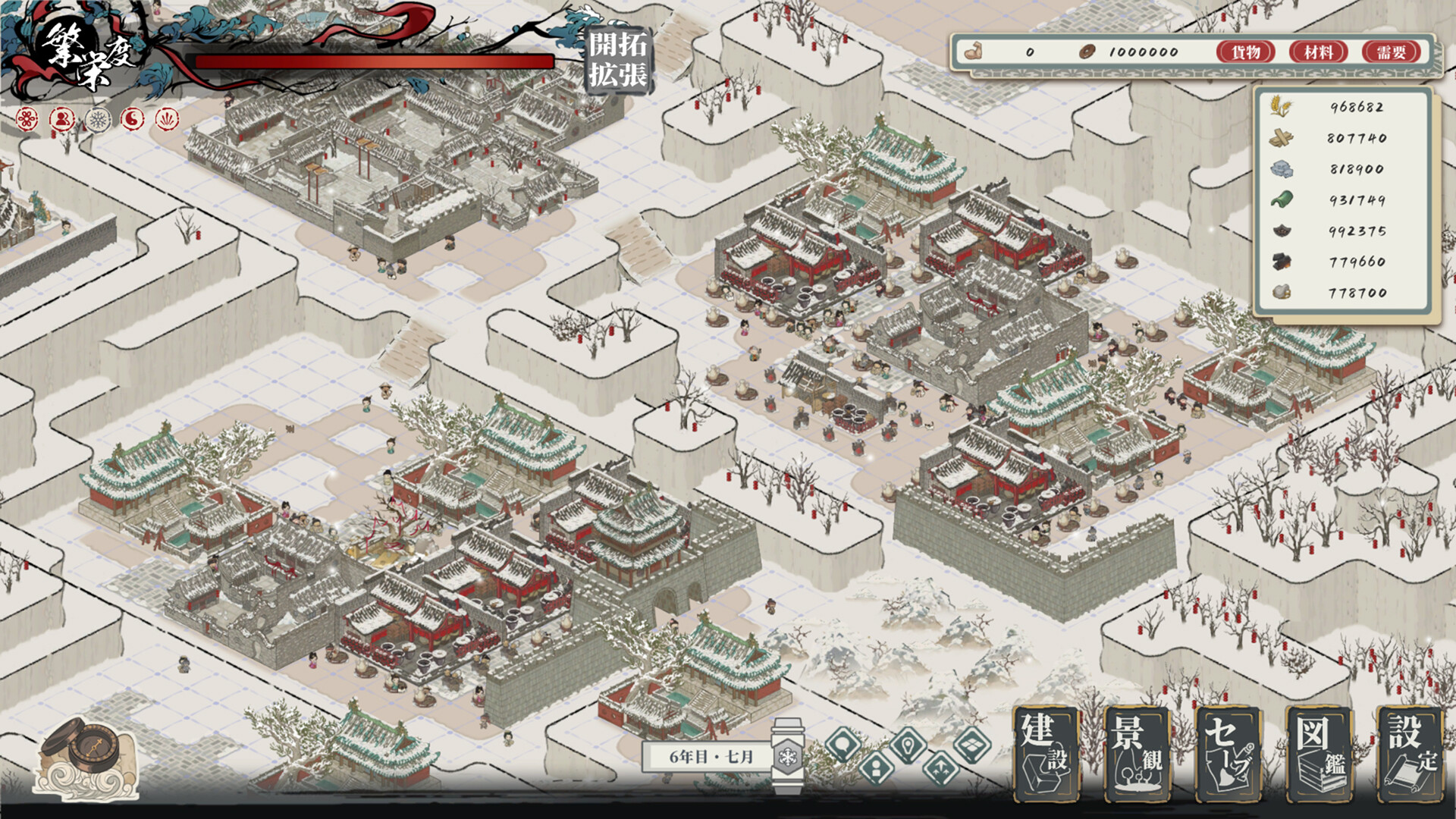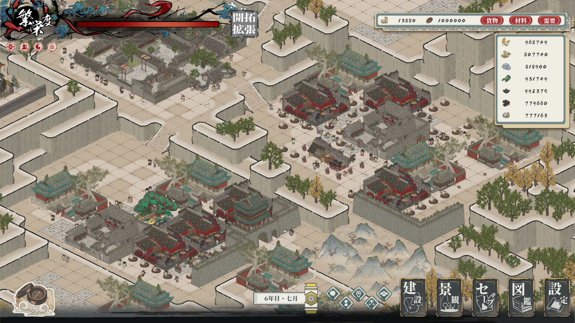 更地に生産施設を建て、町との貿易を展開し、村の規模を拡大して繁栄に導こう。村の特産品である茶葉と桃花酒で取引して、より多くの建物をアンロックし、村の繁栄度を上げよう。