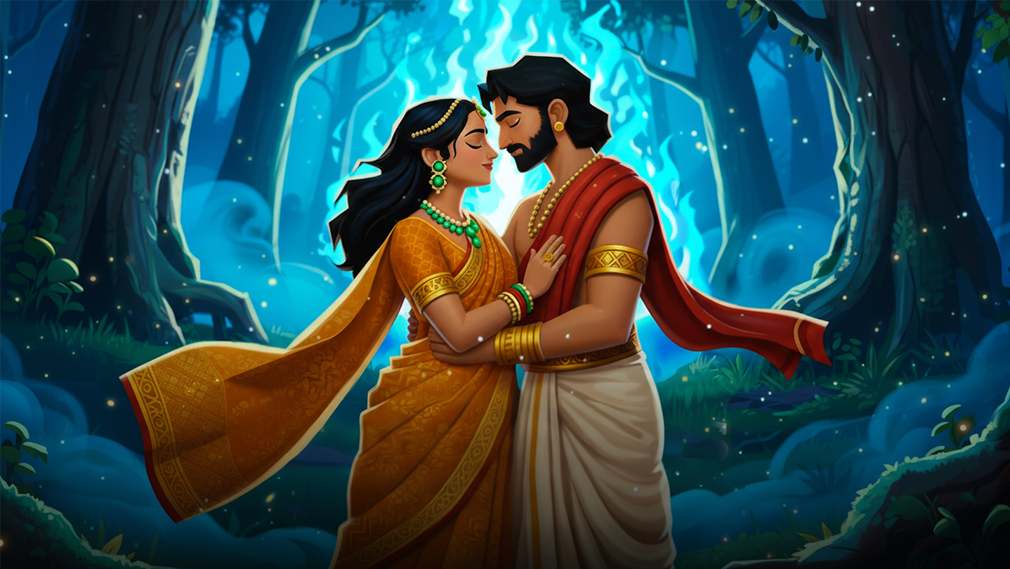 Savitri and Satyavan travel through symbolic spaces that reflect distance, union, challenge, and emotional transformation. Their journey is quiet, minimalist, and told through gameplay, environments, and small world interactions.