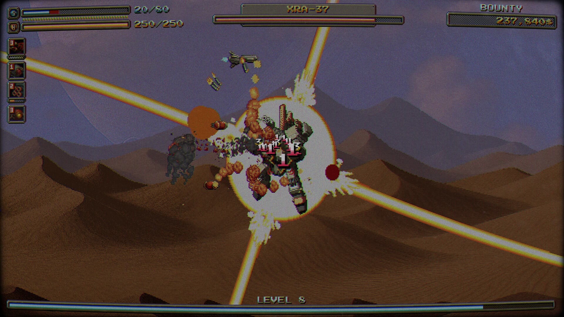 A retro-inspired 2D bullet hell roguelite where you pilot a customizable ship, scavenge enemy cores to upgrade your arsenal, and chase bounties across a high-stakes space rogue odyssey.