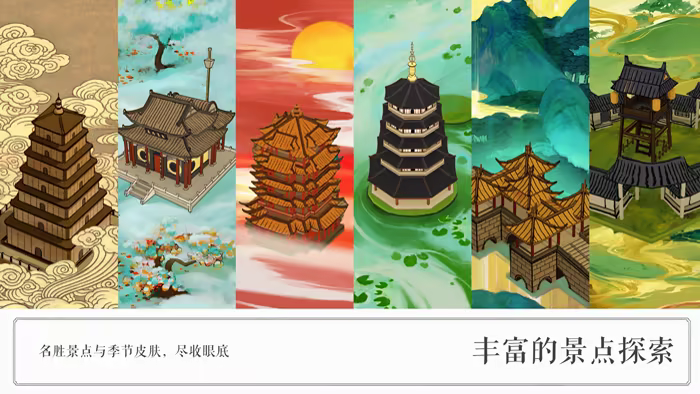 如果世间一成不变,那将失去多少韵味,所以我们准备了超多景点供玩家探寻,每个景点都拥有自己的故事、外观与特性,同时结合了一点点随机要素,为玩家从玩法上提供了更多变的策略性,想要更多的积分还是地块?又或者承担更多风险但是我全都要!一切由你决定。