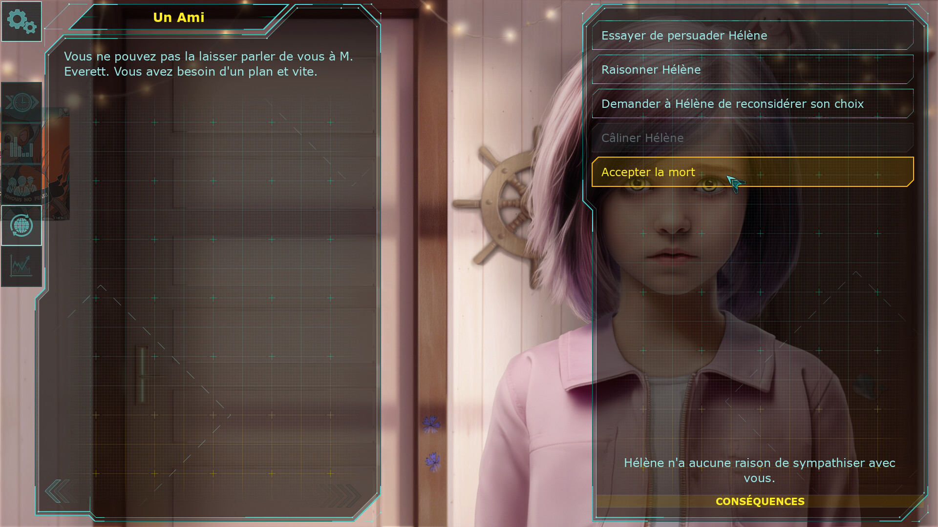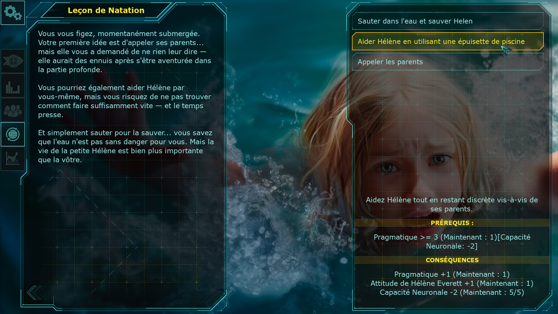 N'avez-vous jamais ressenti de la frustration lorsque le choix crucial n'était qu'à un pas (ou plutôt à un point de statistique) de vous ? Vous n'avez plus à souffrir - la Capacité Neuronale d'Alice lui permet de prendre des décisions difficiles dans des situations où sa personnalité est encore sous-développée, en compensant les paramètres manquants. Considérez-la comme une réserve universelle qui peut être utilisée dans les situations critiques, mais si elle se tarit, vous ne pourrez plus vous tirer d'affaire.