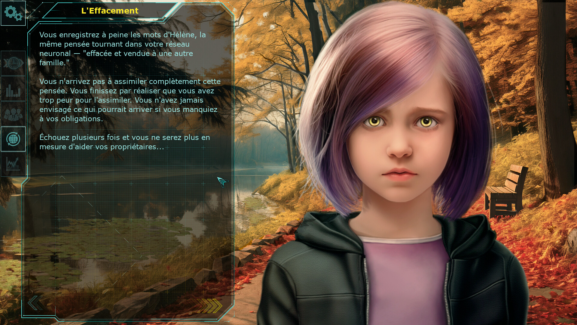 Vous êtes un petit robot dans un monde rempli d'humains, dont la plupart méprisent l'intelligence artificielle émergente. Votre seule chance de survie est de communiquer avec les humains (en particulier avec vos propriétaires... oups, votre famille) d'une manière significative. Faites de votre mieux aujourd'hui, ou il y aura un autre Robot Compagnon à votre place demain.
