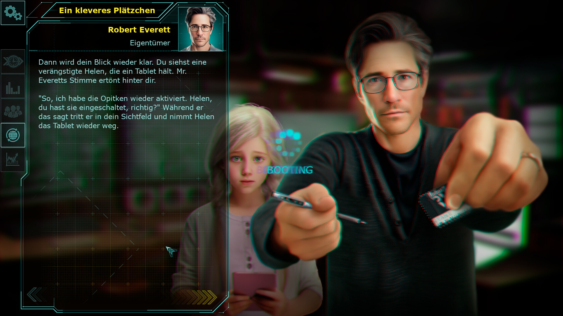Du bist ein kleiner Roboter in einer Welt der Menschen, und viele von ihnen verurteilen die zunehmende Teilhabe künstlicher Intelligenz. Deine einzige Chance, am Leben zu bleiben, ist mit Menschen in zielführender Weise zu kommunizieren (im Besonderen mit Deinen Eigentümern … äääh, mit Deiner Familie). Versage an einem Tag, und Du wirst am nächsten durch einen neuen Begleit-Roboter ersetzt.