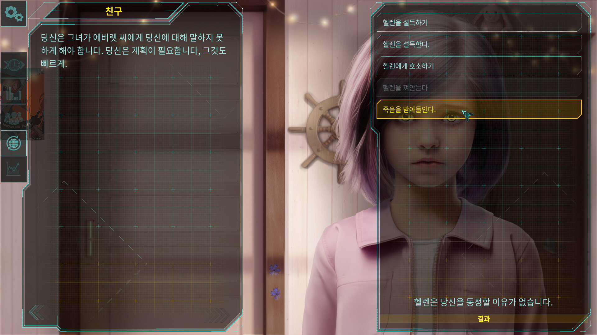 당신은 인간들로 가득 찬 세상 속의 로봇 하나일 뿐입니다. 그리고 많은 인간은 인공지능의 등장을 경멸하고 있지요. 살아남기 위해서는 인간들과 (특히 당신의 주인…. 아니, 가족들과) 조심스럽게 소통해야 합니다. 오늘 최선을 다하지 않으면 내일엔 다른 동반 로봇이 당신 자리를 대체 할 것입니다.