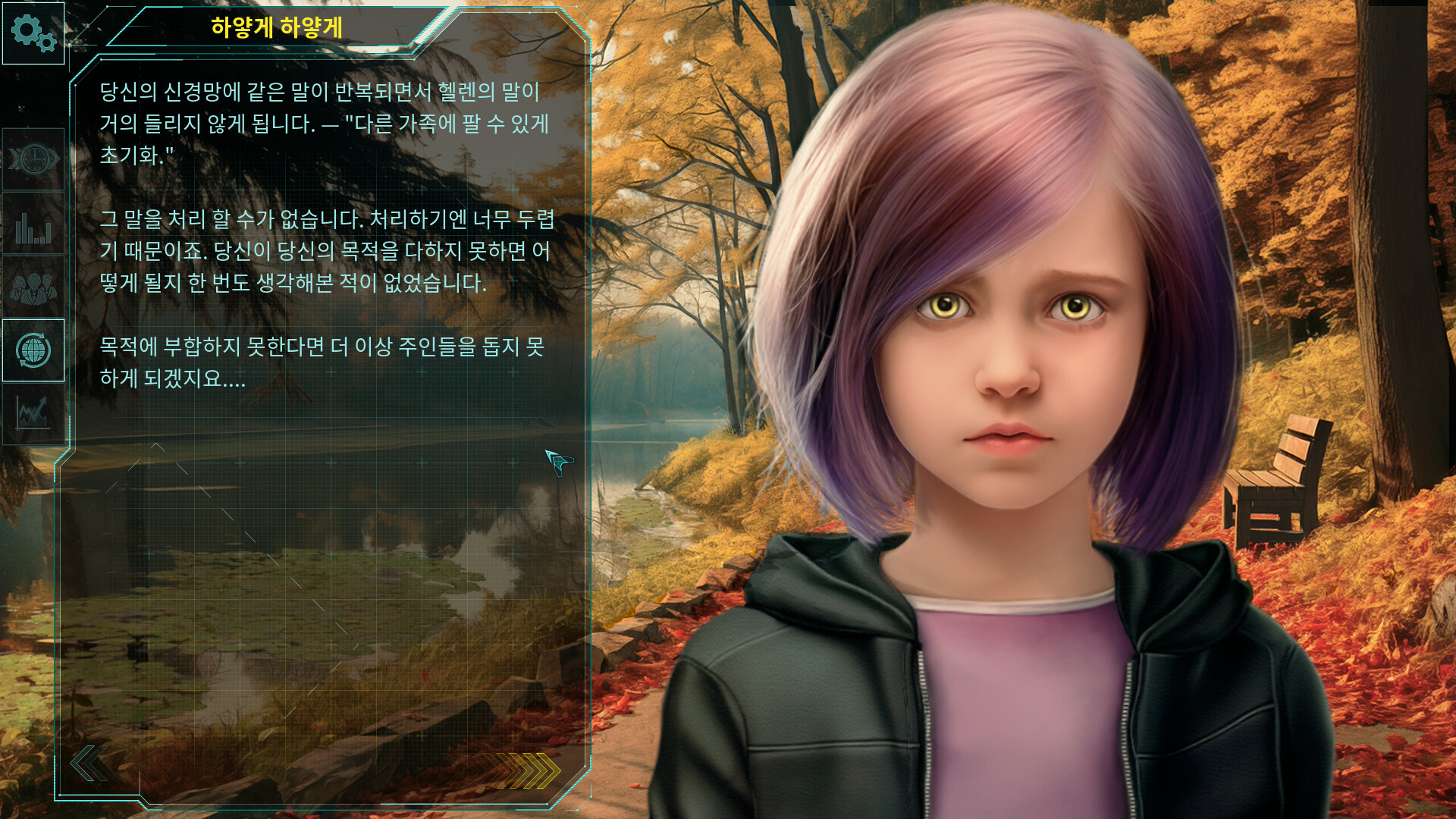 인류는 로봇을 동등하게 받아들이지 않으며, 많은 사람들이 최근의 로봇 발전에 대해 두려움과 증오를 품고 있습니다. 당신은 신중하게 행동해야 하며, 로봇에게는 수많은 위험이 도사리는 새로운 세상을 헤쳐 나가야 합니다. 만약 누군가가 당신의 자아가 형성되고 있다는 것을 알아차리면, 당신은 곧바로 '소거' 당할 것입니다.
