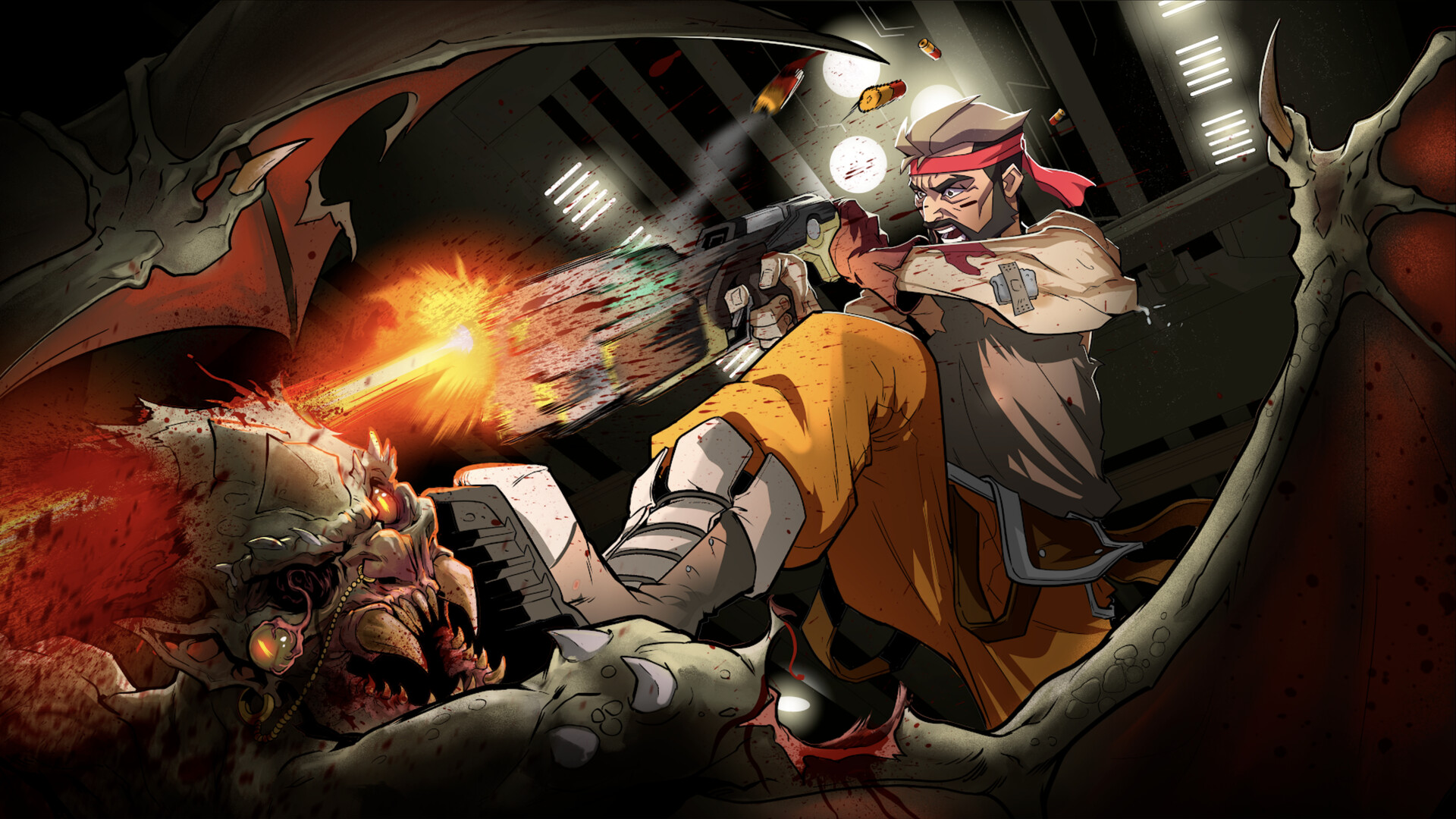 • Local Co-Op: 2 players "Contra-Style".