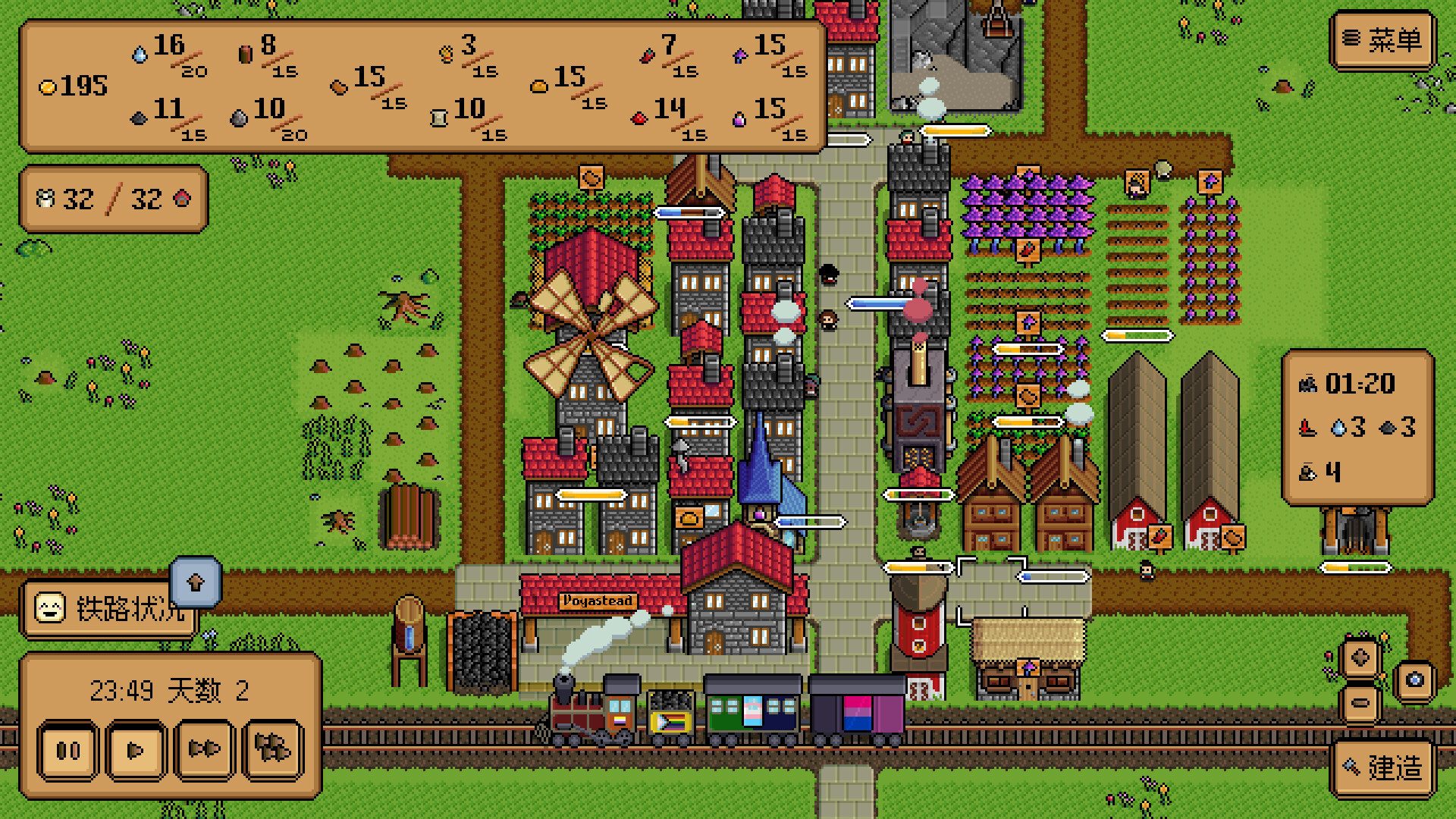 借助铁路之力,修建房屋、农场、仓库等建筑,铸就一方村落。用村民生产的物品换取其他资源与黄金,将村庄发展成繁荣的城镇,令铁路化作强盛之基。