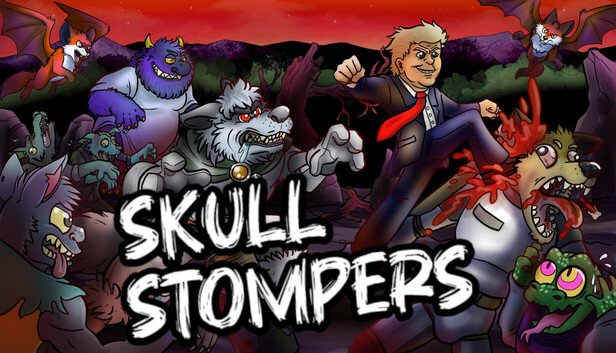 Play as a parody of Trump and the other 15 playable Skull Stomper characters! Which some are unlocked by beating levels.
