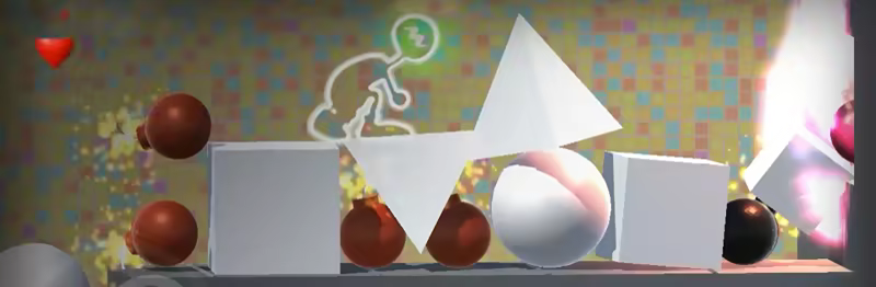 GreenBulb must battle the Shape Machine, a terrible duplication device that unleashes an unending stream of repetitive forms, devoid of meaning or essence. Only GreenBulb can save the world from this grim fate by transforming these lifeless shapes into objects full of color and joy!