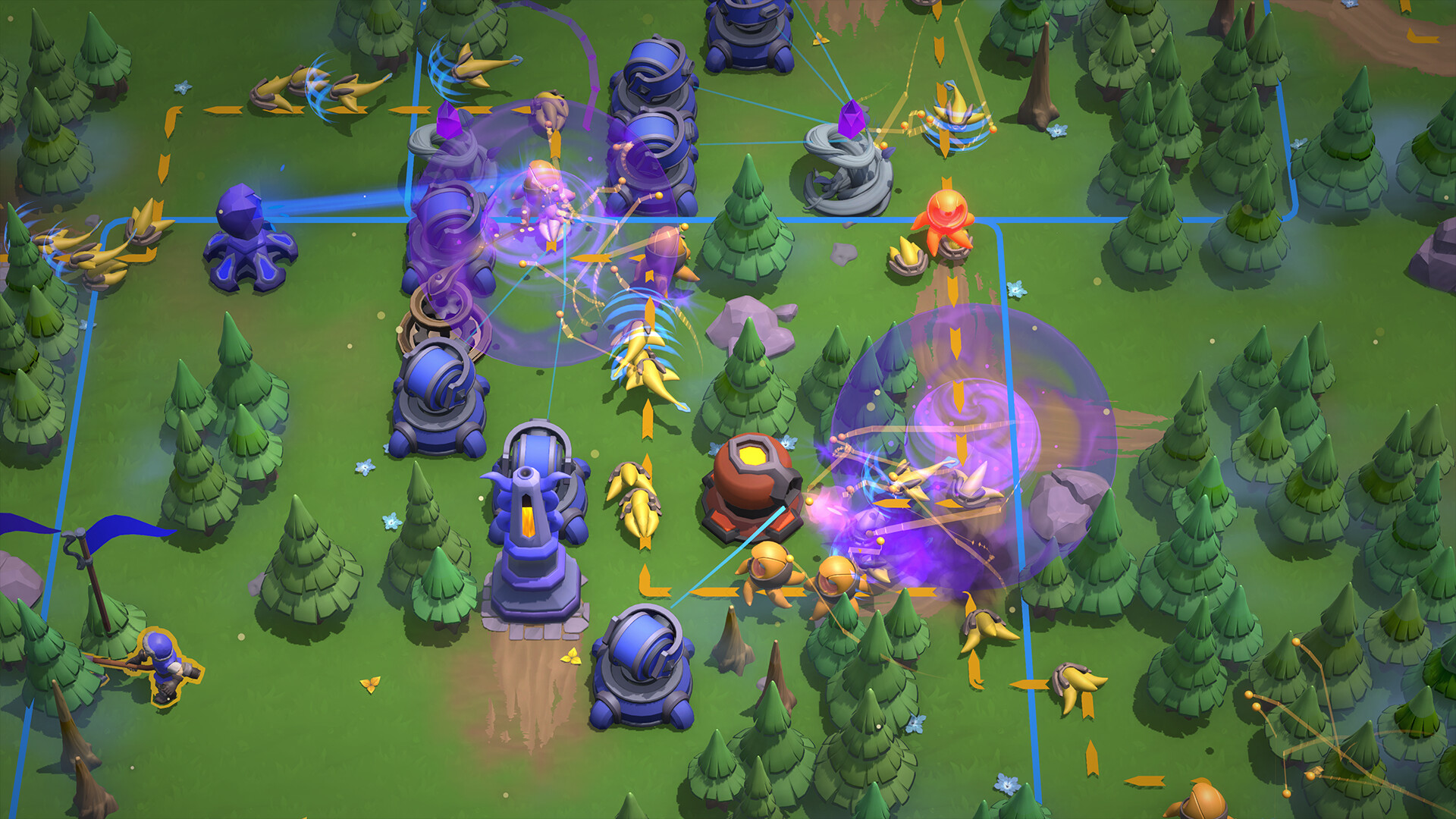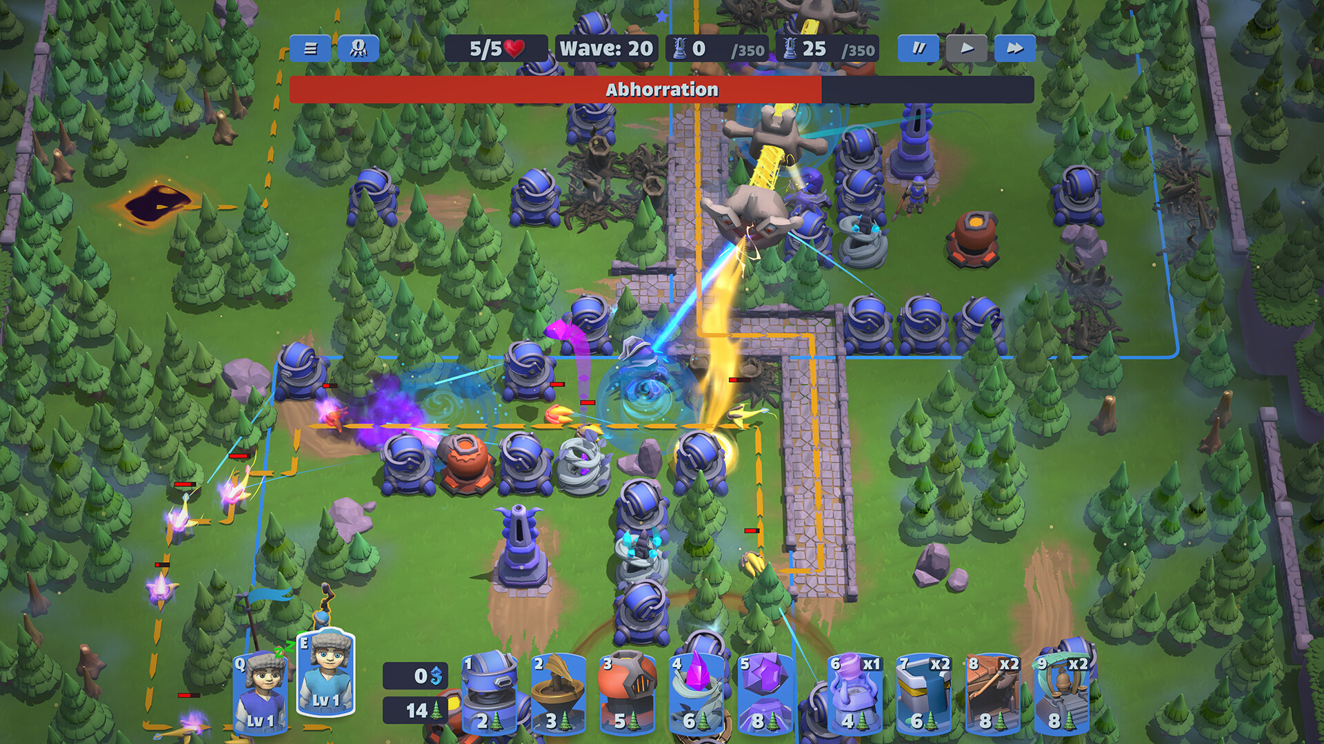 • Towers have one or two upgrade paths that build upon what makes each tower unique, sometimes adding additional effects like burning, vulnerability, or reduced move speed.