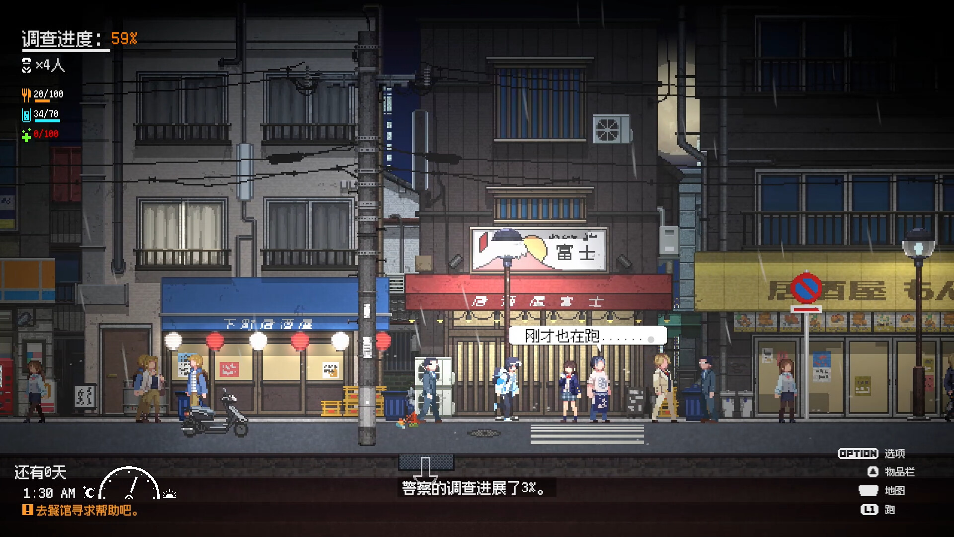 在这个相互监视的社会里,东京市民(NPC)对奇怪行为非常敏感。玩家必须在不引起市民注意的情况下搜寻垃圾箱,否则会引起市民的不适,这将有助于警方的调查。